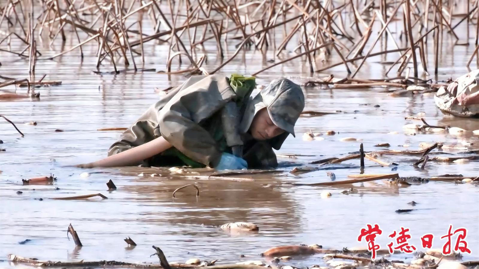 鼎城:冬日藕塘采收忙 泥中掘金富村民